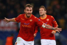 ROME – NOVEMBER 23: Daniele De Rossi of AS Roma celebrates after scoring the second goal during the UEFA Champions League Group E match between AS Roma and FC Bayern Muenchen at Stadio Olimpico on November 23, 2010 in Rome, Italy. (Photo by Paolo Bruno/Getty Images)