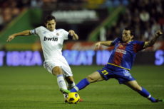 Real Madrid’s Argentinian midfielder Fernando Gago (L) vies with Levante’s forward Ruben Suarez (R) during the Spanish King’s Cup (Copa del Rey) football match Levante UD vs Real Madrid on January 6, 2011 at Ciutat de Valencia stadium. AFP PHOTO/ PEDRO ARMESTRE (Photo credit should read PEDRO ARMESTRE/AFP/Getty Images)