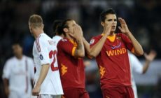 AS Roma’s forwards Erik Manuela Lamela (R) and Pablo Daniel Osvaldo react during the Italian Serie A football match between AS Roma and AC Milan, on October 29, 2011, at Rome’s Olympic stadium. AC Milan won 3-2. AFP PHOTO / FILIPPO MONTEFORTE (Photo credit should read FILIPPO MONTEFORTE/AFP/Getty Images)