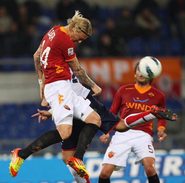 ROME, ITALY – MARCH 19: Simon Kjaer of AS Roma in action during the Serie A match between AS Roma and Genoa CFC at Stadio Olimpico on March 19, 2012 in Rome, Italy. (Photo by Paolo Bruno/Getty Images)