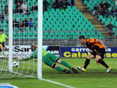 BARI, ITALY – MAY 01: Aleandro Rosi of Roma scores their third goal during the Serie A match between AS Bari and AS Roma at Stadio San Nicola on May 1, 2011 in Bari, Italy. (Photo by Giuseppe Bellini/Getty Images)