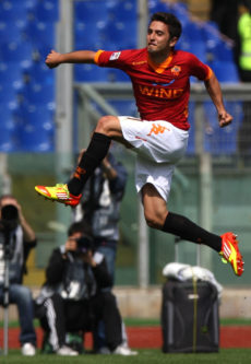 ROME, ITALY – APRIL 01: Marco Antonio Marquinho of AS Roma celebrates after scoring his team’s first goal during the Serie A match between AS Roma and Novara Calcio at Stadio Olimpico on April 1, 2012 in Rome, Italy. (Photo by Paolo Bruno/Getty Images)