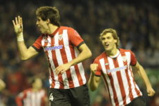 Athletic Bilbao’s midfielder Javi Martinez (R) celebrates a goal Athletic Bilbao’s forward Fernando Llorente (L) during the Spanish league football match Athletic Bilbao vs Espanyol, at San Mames stadium, in Bilbao, on February 4, 2012. AFP PHOTO/ RAFA RIVAS (Photo credit should read RAFA RIVAS/AFP/Getty Images)