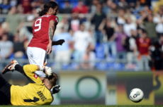 AS Roma’s Argentine forward Pablo Daniel Osvaldo (R) vies with Fiorentina’s goalkeeper Artur Boruc during the Italian Serie A football match AS Roma vs Fiorentina on April 25,2012 in Rome’s Olympic Stadium. Fiorentina defeated AS Roma 2-1. AFP PHOTO / Filippo MONTEFORTE (Photo credit should read FILIPPO MONTEFORTE/AFP/Getty Images)