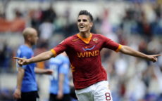 AS Roma’s Argentine forward Erik Manuel Lamela celebrates after scoring against Novara on April 1, 2012 during a Serie A football match at Rome’s Olympic stadium. AFP PHOTO / Filippo MONTEFORTE (Photo credit should read FILIPPO MONTEFORTE/AFP/GettyImages)