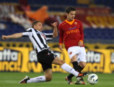 ROME, ITALY – APRIL 11: Fernando Gago (R) of AS Roma competes for the ball with Abdil Almen of Udinese Calcio during the Serie A match between AS Roma and Udinese Calcio at Stadio Olimpico on April 11, 2012 in Rome, Italy. (Photo by Paolo Bruno/Getty Images)