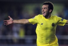 Villarreal’s Italian forward Giuseppe Rossi celerbates his second goal during their UEFA Champions League play off second leg football match Villarreal CF vs Odense BK on August 23, 2011 at El Madrigal stadium in Villareal. AFP PHOTO/ JOSEP LAGO (Photo credit should read JOSEP LAGO/AFP/Getty Images)
