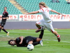 BARI, ITALY – MARCH 11: Fabio Ceravolo of Reggina and Alessandro Crescenzi of Bari in action during the Serie B match between AS Bari and Reggina Calcio at Stadio San Nicola on March 11, 2012 in Bari, Italy. (Photo by Giuseppe Bellini/Getty Images)