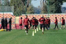 La Roma è scesa in campo per l’allenamento pomeridiano in vista della partita contro il Bologna di questa domenica. La squadra è scesa in campo alle 15.50 per svolgere il riscaldamento come di consueto. Assenti alla seduta Piris, uscito per infortunio stammatina, Perrotta, Taddei, De Rossi, Marquinhos e Destro. Quest’ultimo si dovrà operare al menisco a causa di un infortunio riportato per la gara contro l’Inter. Totti invece si sta allenando in palestra.